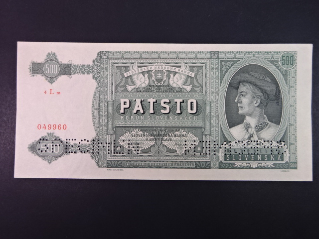 500 Ks 1941 série 4Lm, 2x perf. SPECIMEN dole