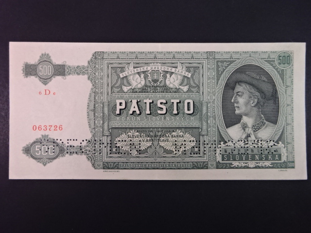 500 Ks 1941 série 6De, 2x perf. SPECIMEN dole