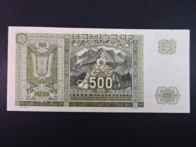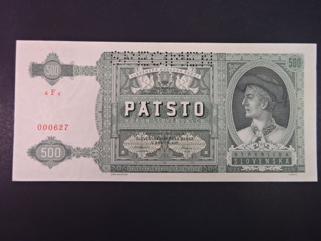 500 Ks 1941 série 6Fc 000627, perf. SPECIMEN nahoře