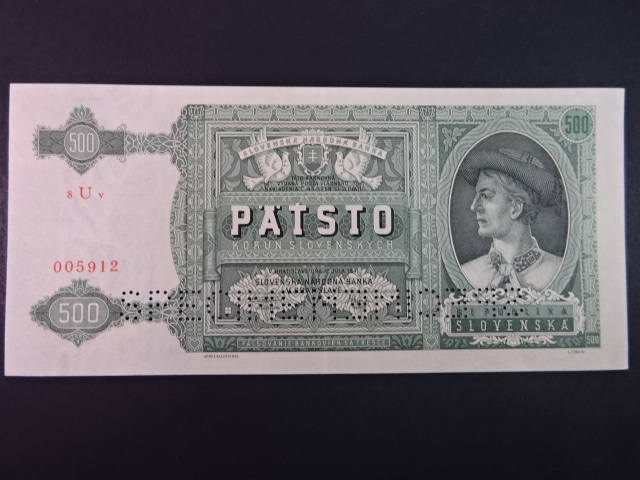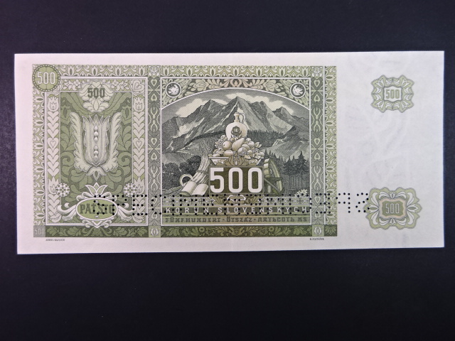 500 Ks 1941 série 8Uv, 2x perf. SPECIMEN dole