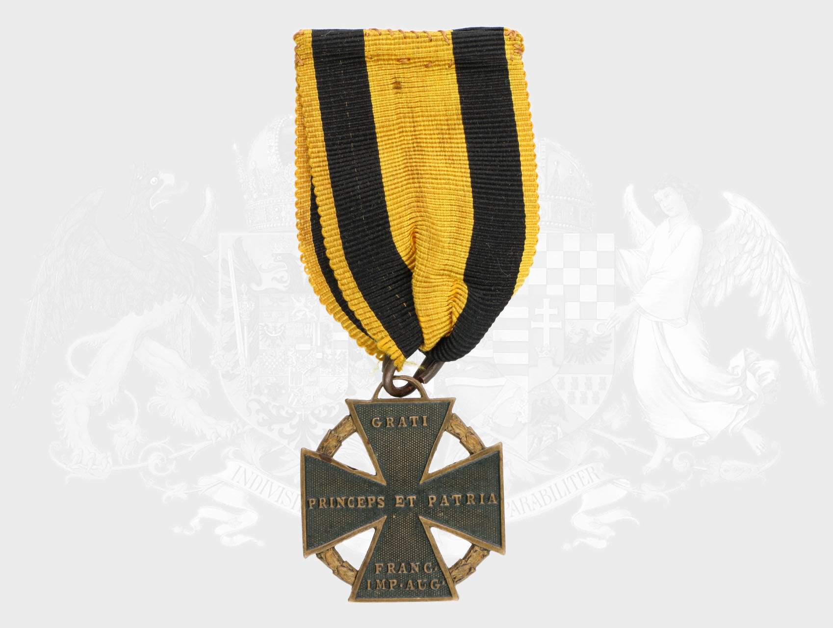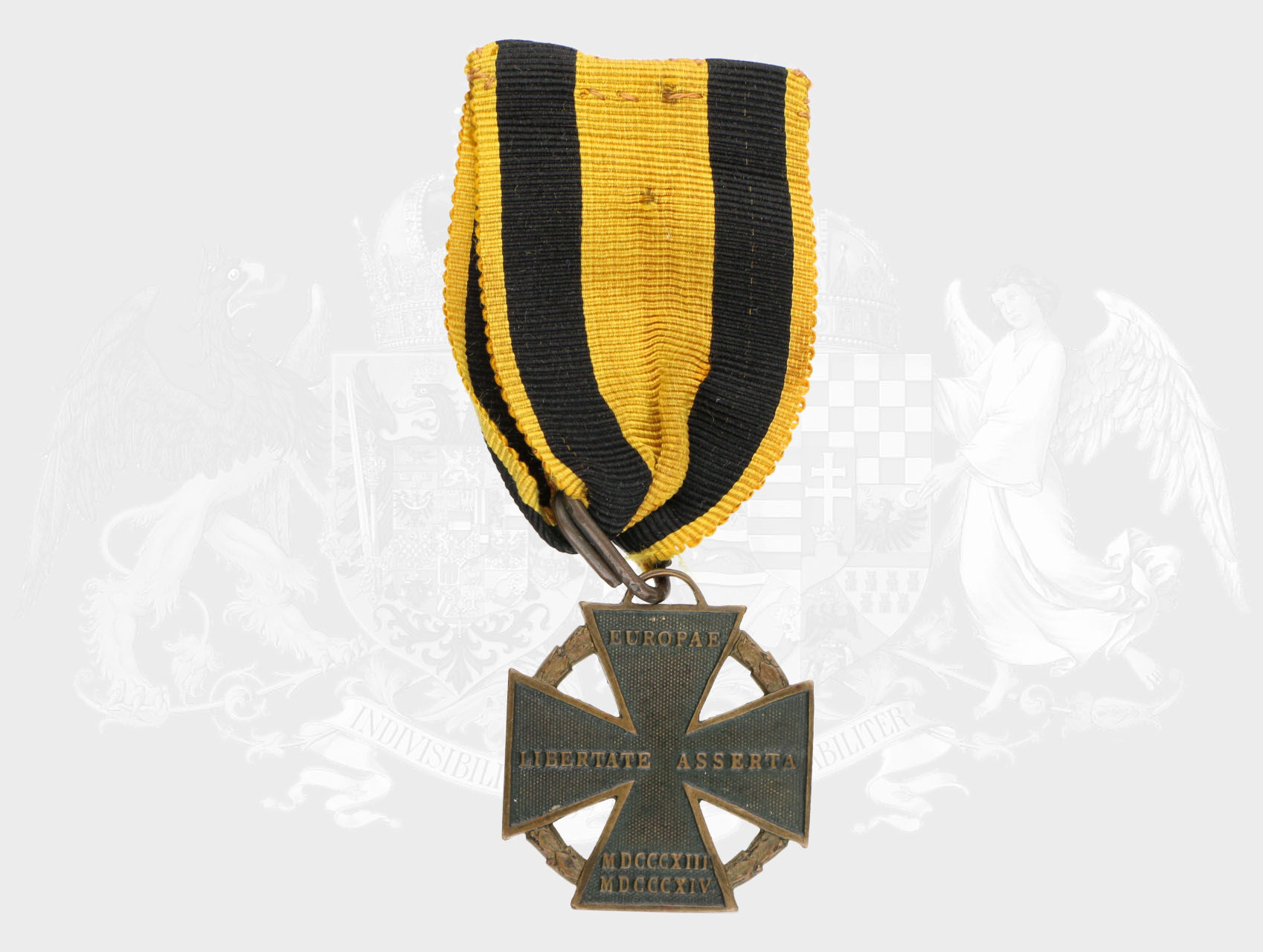 Armádní kříž z let 1813 - 1814 zvaný dělový, nepůvodní prstenec a stuha stará nepůvodní, značený na závěsu