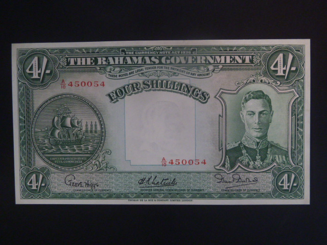 BAHAMY, 4 Schillings 1936, BNB. B108d, intro. 1947, Pi. 9
