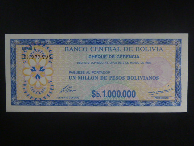 BOLÍVIE, 1.000.000 pesos Bolivianos 1985, BNB. B377a, Pi. 192C