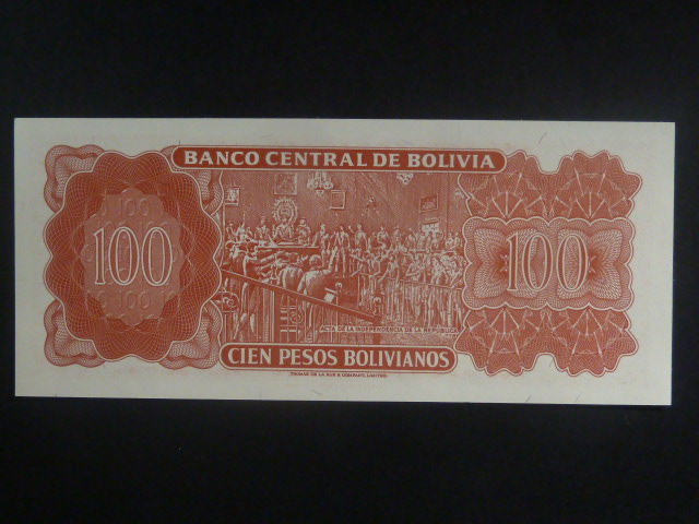 BOLÍVIE, 100 pesos Bolivianos 1966, BNB. B350c, Pi. 163