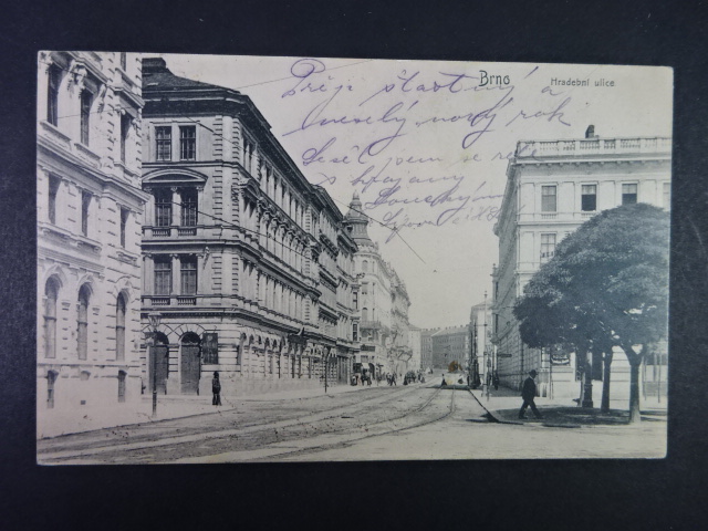Brno - Hradební ulice (Basteigasse) dnes Roosveltova - Pilgramova (Pilgramgasse), prošlá 1911