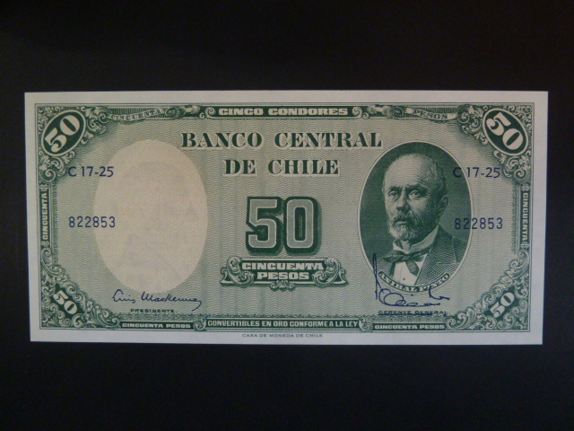 Chile, 5 centesimo na 50 Pesos 1960, BNB. B260c, Pi. 126