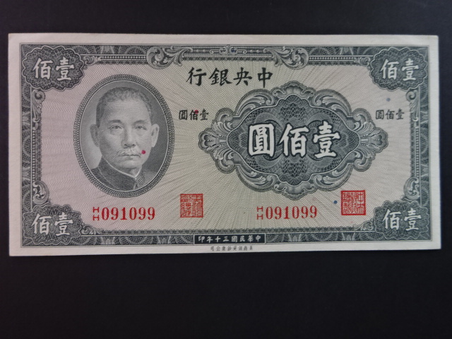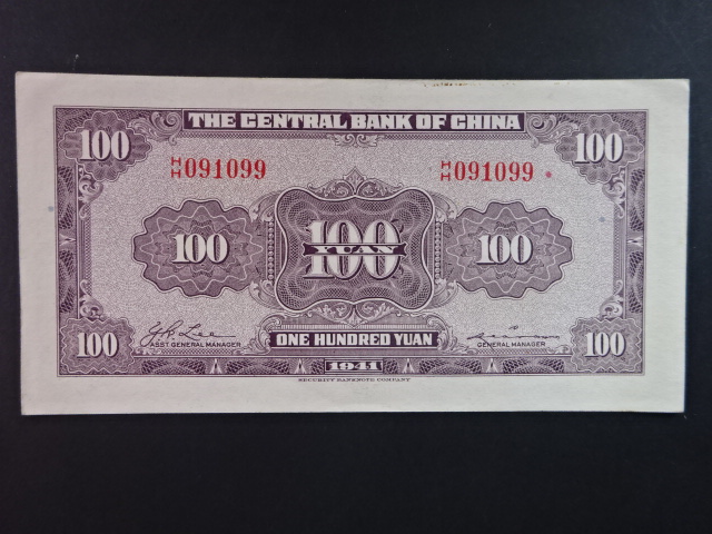 ČÍNA, 100 Yuan 1941, BNB. B3089a, Pi. 243