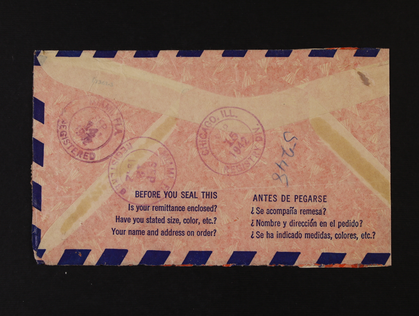 Curacao - let. R-dopis do USA s pod. raz. WILLEMSTAD 8.SEP.42 + přídavný trojúhelníkový let. kašet, cenzurní páska, průch. a přích. raz.