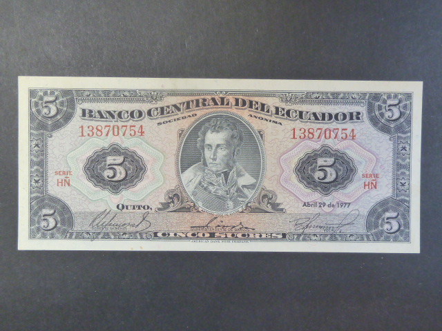 EKVÁDOR, 5 Sucres 1977, Pi. 108a