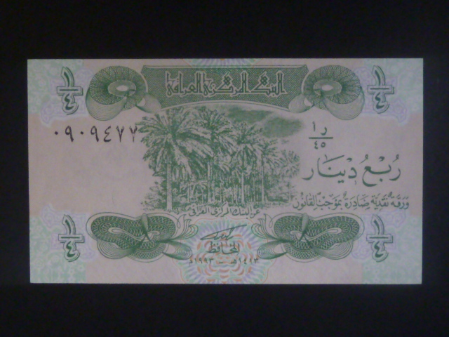 IRÁK, 1/4 dinar 1993, BNB. B334a, Pi. 77