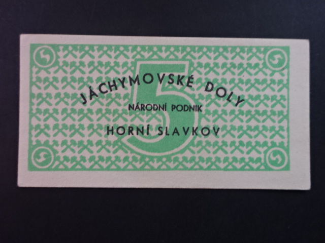 Jáchymovské doly n.p. Horní Slavkov, poukázka 5 K b.d. v zelené barvě