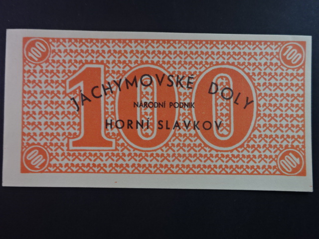 Jáchymovské doly n.p. Horní Slavkov, poukázka 100 K b.d. v červené barvě