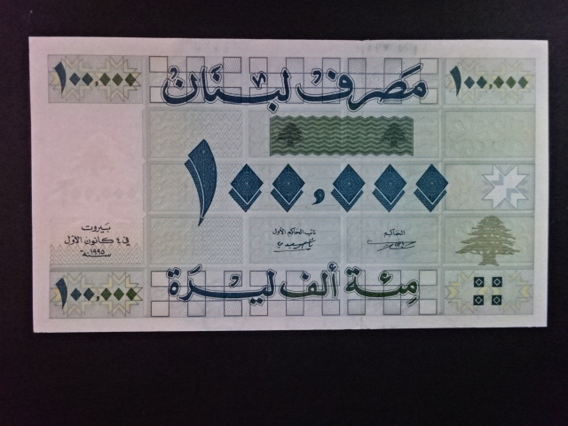 LIBANON, 100.000 Livres 1995, BNB. B516b, Pi. 74