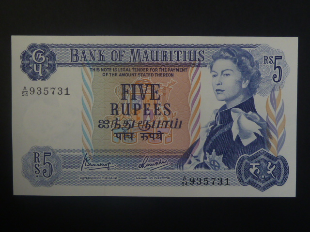 MAURITIUS, 5 Rupees 1967, prefix A54, BNB. B401c, Pi. 30