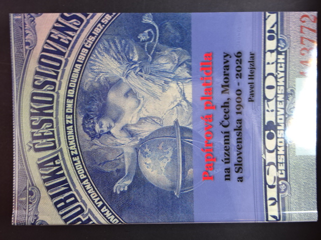 Papírová platidla na území Čech, Moravy a Slovenska 1900 - 2026, Pavel Hejzlar, 436 stran v barvě, ocenění v korunách i eurech, specializovaný katalog na bankovky, brožované vydání (měkké desky)