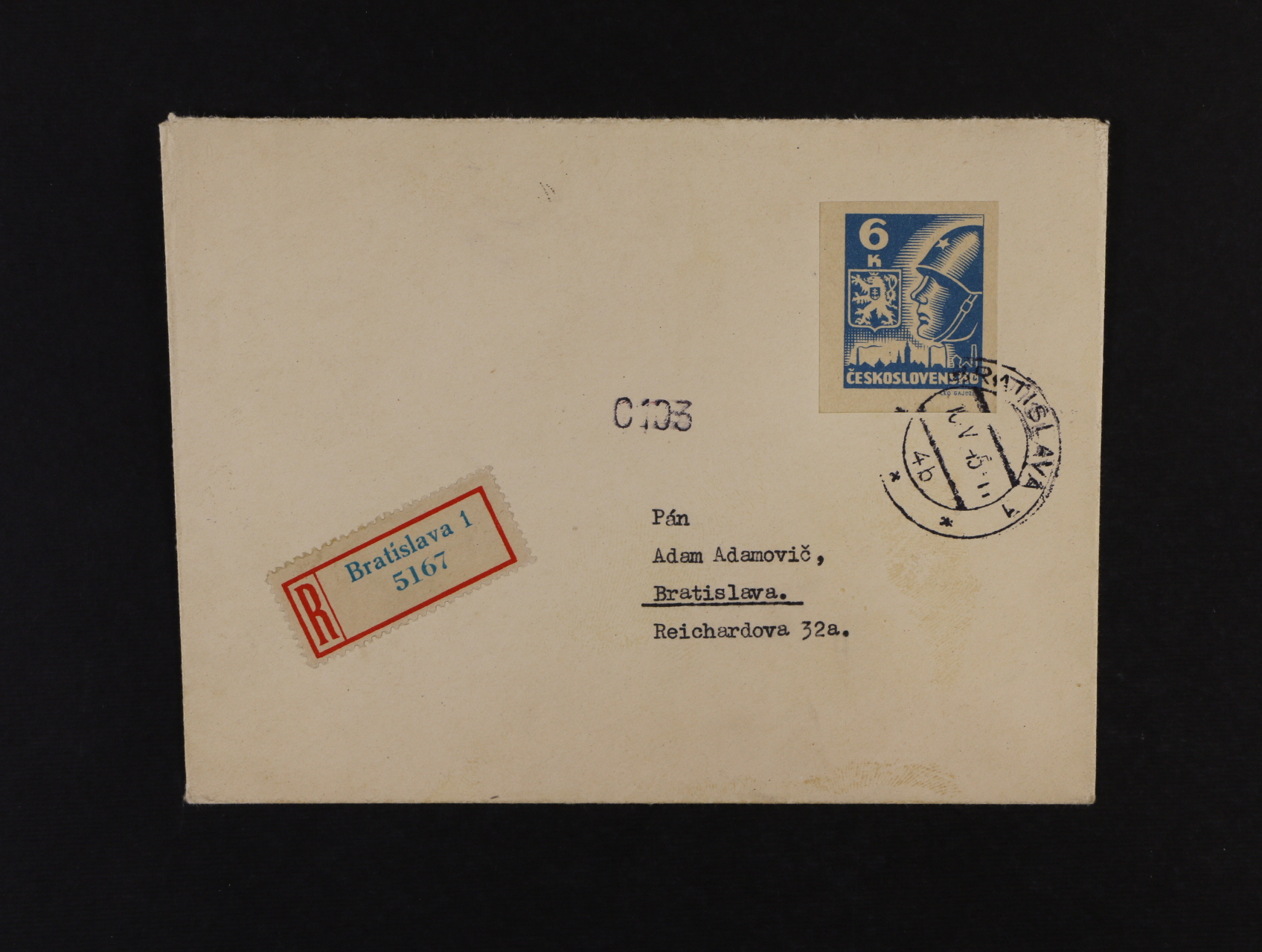 R-dopis frank. zn. č. 356, pod. raz. BRATISLAVA 1 10.5.45, zajímavé