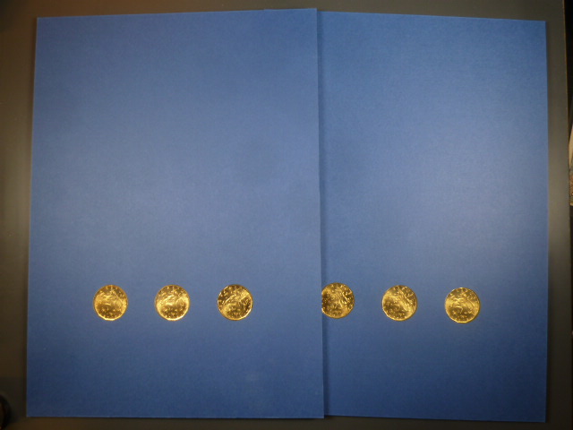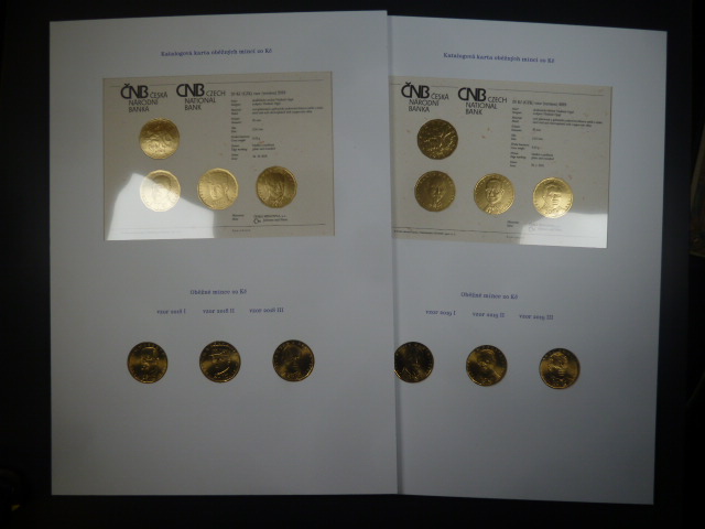 sada 2019 6ti pamětních 20 Kč mincí z roku 2018 a 2019 ve dvou paspartách A4, náklad 300 ks pro reprezantační knihu ČNB