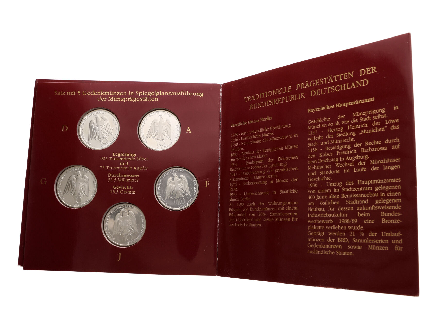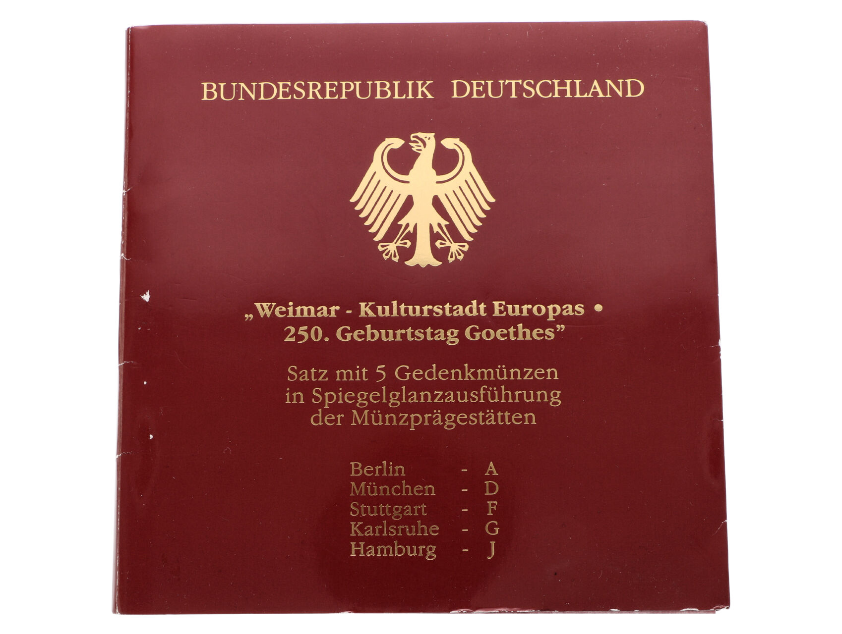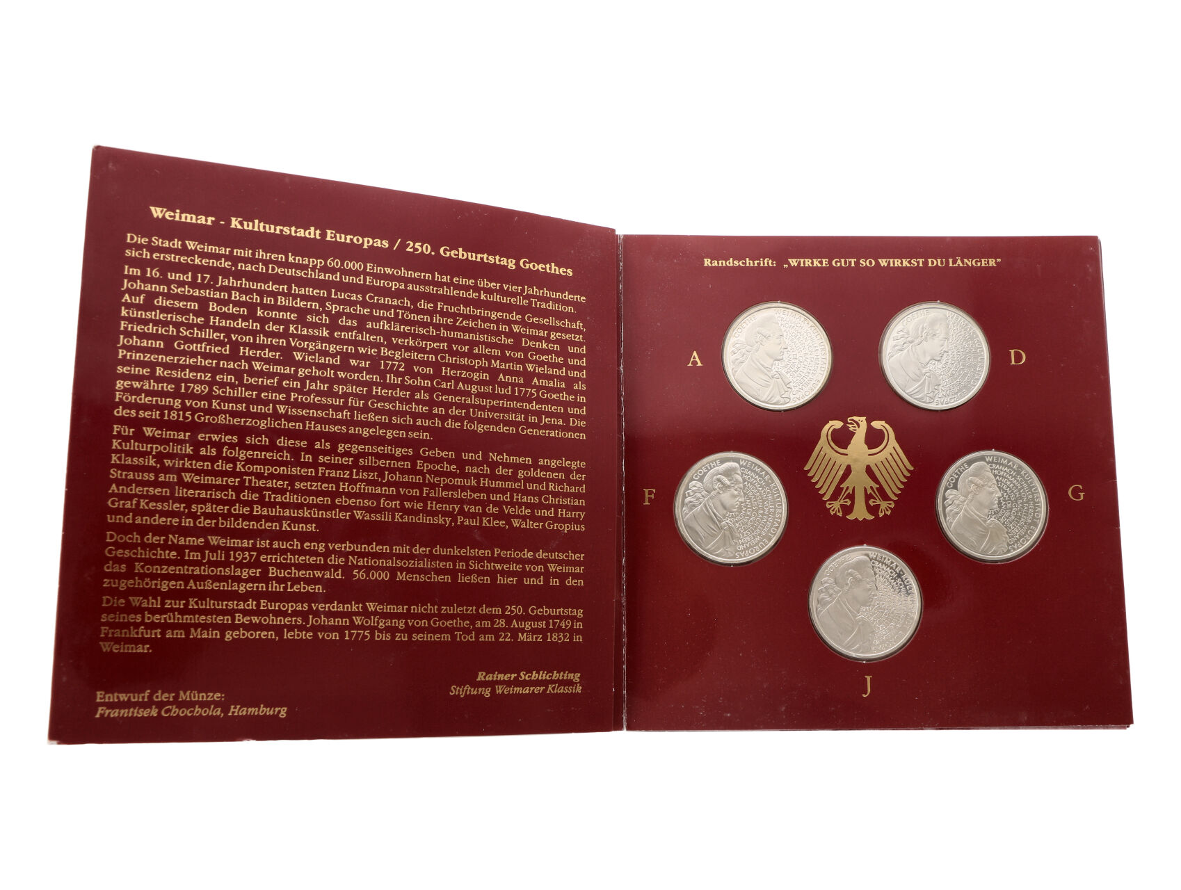 Sada 5x 10 Marka 1999 - 250. výročí narození J. W. von Goethe, všechny mincovny_