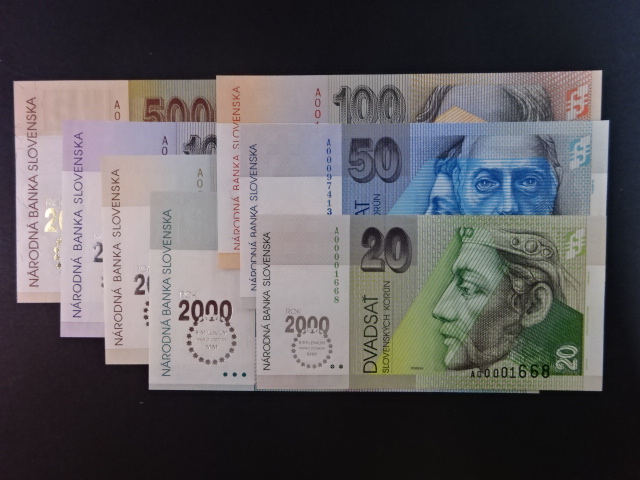 sada bankovek 20 - 5000 Sk 2000 s přítiskem Bi-milénium