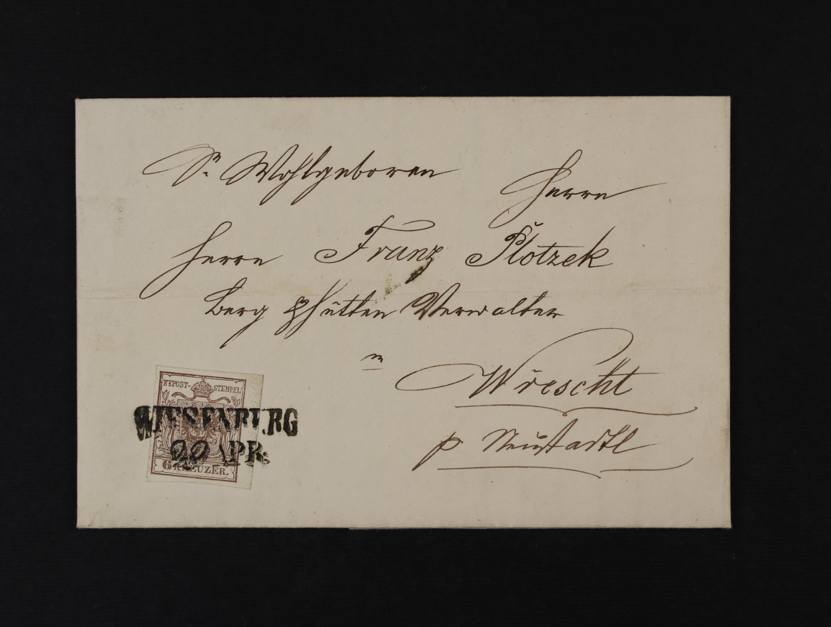 skl. dopis z r. 1855 frank. zn. Fe. č. 4 MP, typ III, řádkové raz. WIESENBERG 29.APR. + průch. a přích. raz., dobrá kvalita
