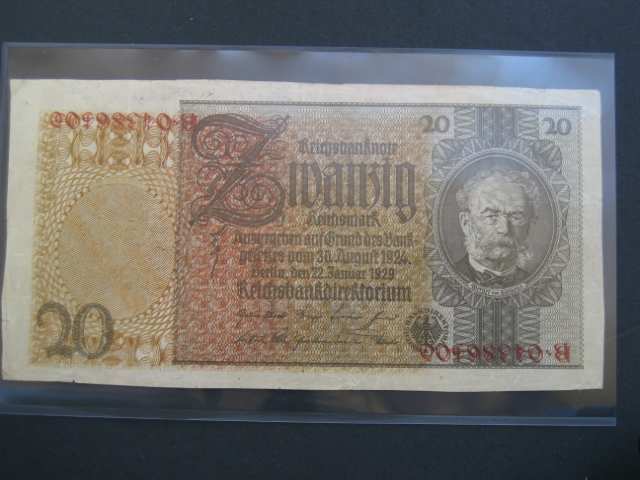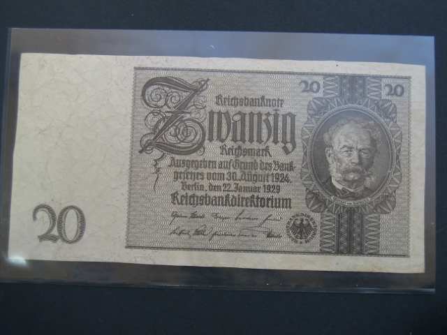 740 20 Rm 22.1.1929 chybotisk - obrácený podtisk na líci včetně číslovače, Ros. 174, Pi. 181 2000