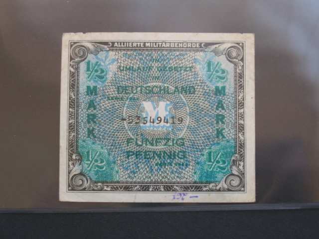 745 Allierte 1/2 Mark 1944, platná na čs. území, Pi. 191a, Ros. 200a (US) 250