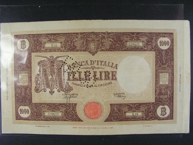 650 padelek, 1000 Lire - 1.8.1944, dobovy tisteny padelek - zachyceny (perf. 1x FALSO), vysoky nominal !, Pi.72a falzum 3000