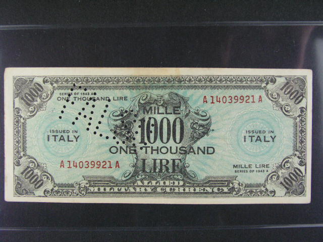 652 padelek, 1000 Lire - 1943, "spojenecka", dobovy tisteny padelek - zachyceny (perf. 1x FALSO), vysoky nominal !, Pi.M23 falzum 1500