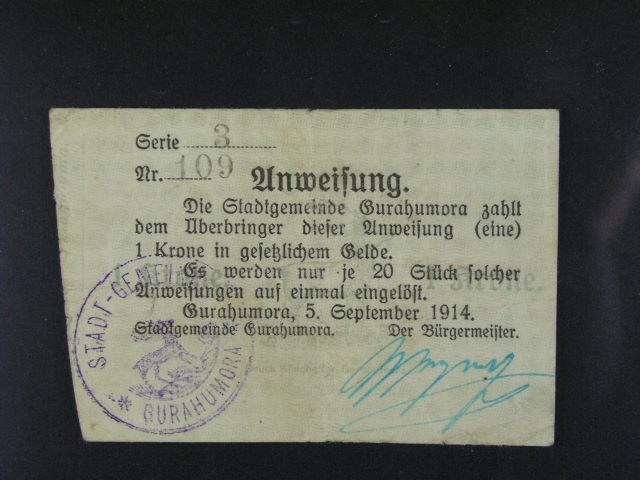 nouzova platidla, Gurahumora 1 Krone 1914, Ri. 45a