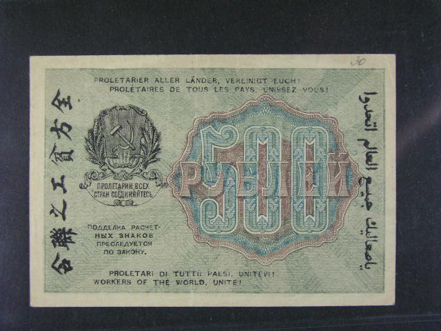 500 Rubles 1919 (1920), na R pouze podtisk bez hlavniho tisku, chybotisk, zajimave, Pi. 102a