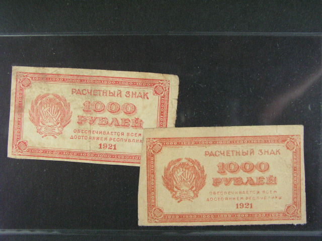 padelek, 1000 Rbl - 1921, dobovy tisteny padelek (+ original), Pi.112 falzum - 2ks