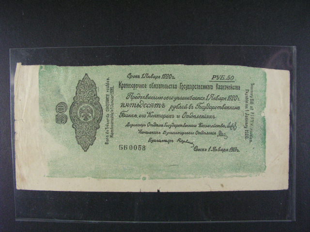 Sibir, 50 Rubles 1.1.1919 jednostrany dobovy padelek s okraji, na R pozn. "Padelek Irkutsk 1920 Sibir", Pi. S835
