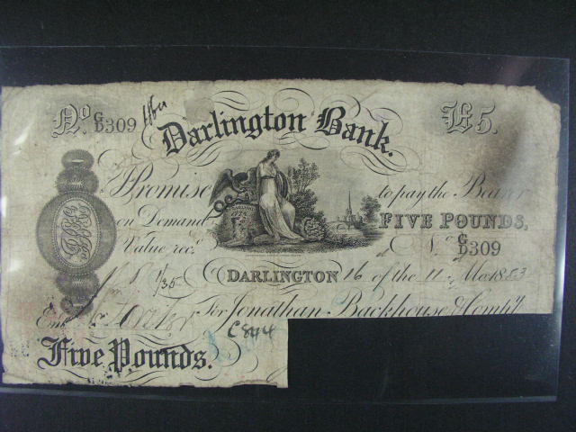 927 Darlington Bank, 5 Pounds 1883, znehodnoceni odstrizenim rohu 1000