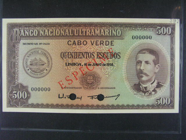 500 Escudos 16.6.1958, anulat, pret. ESPECIMEN, Pi.50