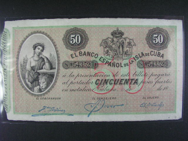 50 Pesos 15.5.1896 s pretiskem PLATA na R, Pi. 50b
