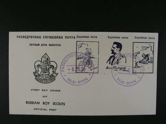 2111 obalka s pritiskem RUSSIAN BOY SCOUTS frank. dvema nevydanymi zn. s raz. RAZVEDCESKAJA POCTA NEW YORK 6.5.56 400