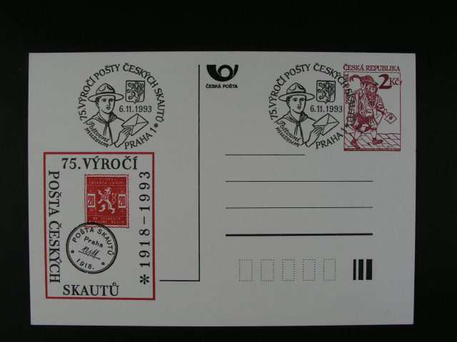 2114 Ceska republika - celina PP B 6 k 75. vyroci posty cs. skaut? s pam. raz. 75. vyroci posty cs. skaut? PRAHA 1 6.11.93 200