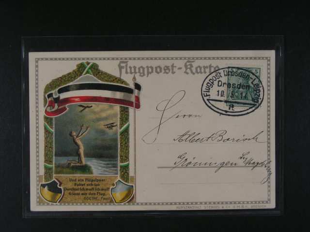 cislovana let. karta frank. zn. Mi. c. 85 I s ovalnym raz. FLUGPOST DRESDEN - LEIPZIG 10.5.14, lux. kvalita