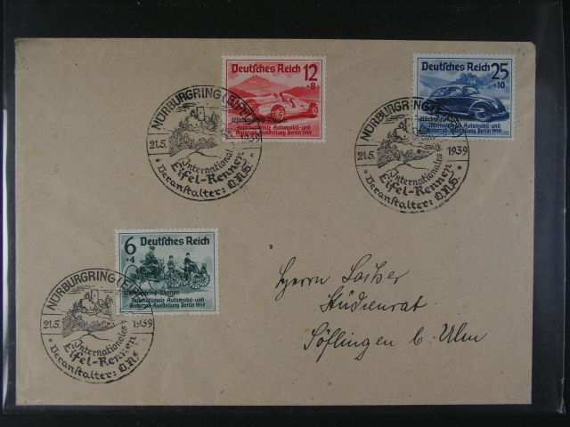 obalka frank. zn. Mi. c. 695 - 7 s pam. raz. NÜRNBURGRING EIFEL - RENEN 21.5.39