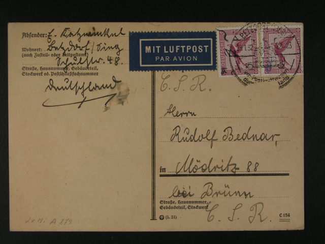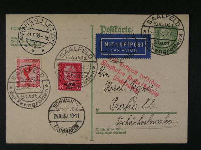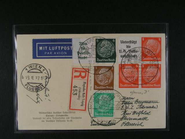 let. R-pohlednice do Rakouska frank. mj. zn. Mi. c. W 63 ve ctyrbloku, W 66, S 127, pod. raz. HALLE LEIPZIG, FLUGHAFEN 17.2.37 + prich. raz.