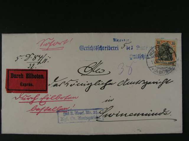 EXPRES dopis frank. 25pf Germania s dennim raz. HULTSCHIN 13.10.1911 (od r. 1923 cs. územi), dobra kvalita, zajimave