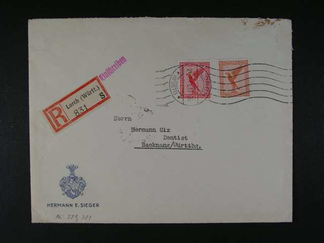 R-dopis frank. zn. Mi. c. 379, 381 se stroj. raz. LORCH 21.2.31
