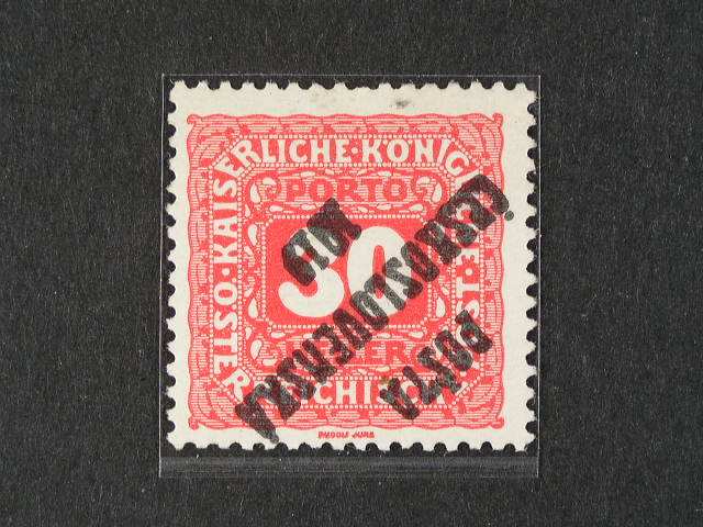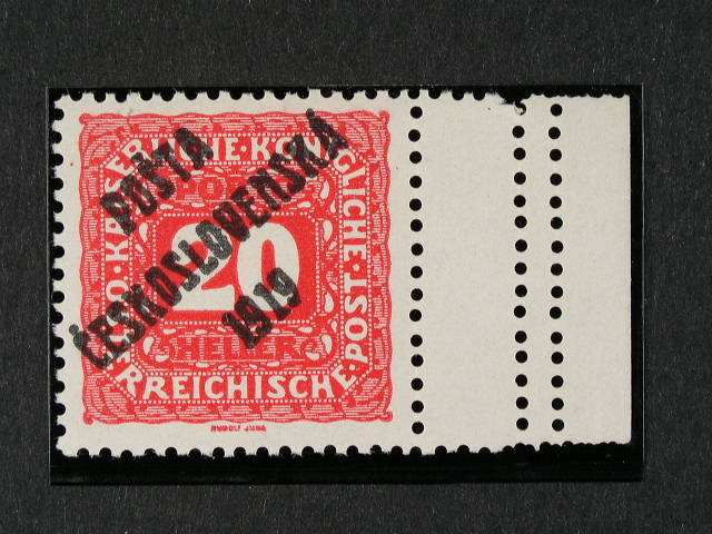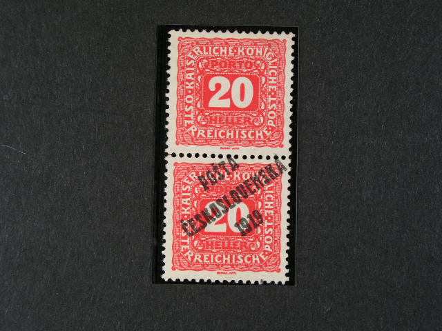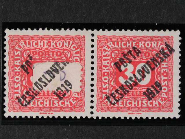 392 zn. c. 77 ve vodorovne dvoupasce, na prave zn. prilepen pred pretiskem kousek papiru, zk. Gilbert, Benes 500