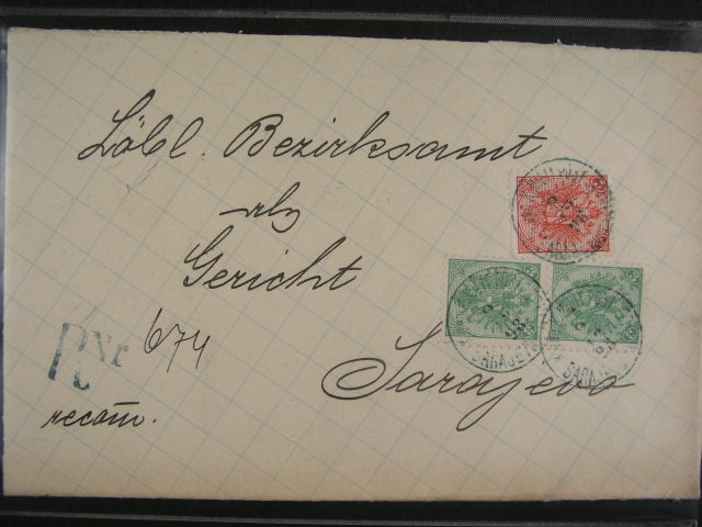 1340 R-dopis do Sarajeva frank. 5h + 30h Mi. c. 13 A + 18 B, pod. raz. K.u.K. MP BOS. KRUPA 14.4.01 3300