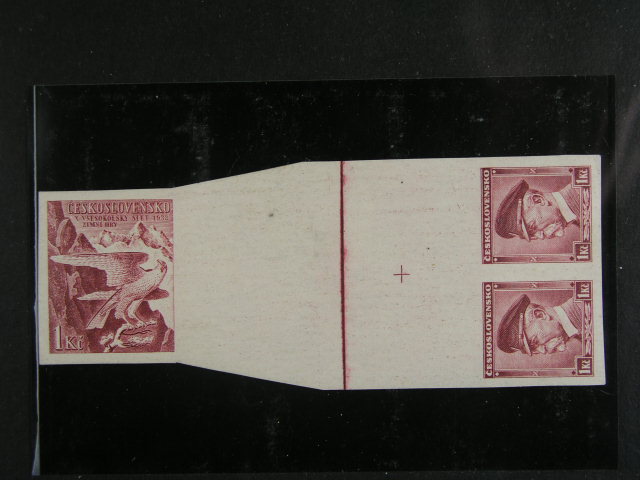 ZT zn. c. 332 v soutisku se ZT zn. c. 303 ve vodorovne dvoupasce, velmi vzacne vyskytujici se exemplar, zk. a atest Karasek