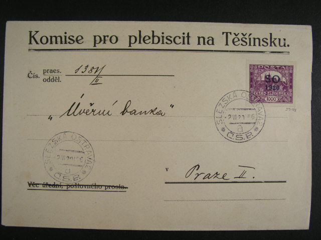 661 obalka Komise pro plebiscit ... frank. zn. SO c. 22 s pod. raz. SLEZSKA OSTRAVA 2.6.20, zk. Benes 500