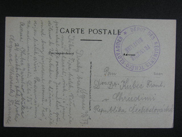 673 Francie - celistvost do Chrudimi odeslana z franc. Cognac 20.6.19 s raz. DEPOT DES REGIMENTS TCHECO-SLOVAQUES ..., velmi dobra kvalita 800