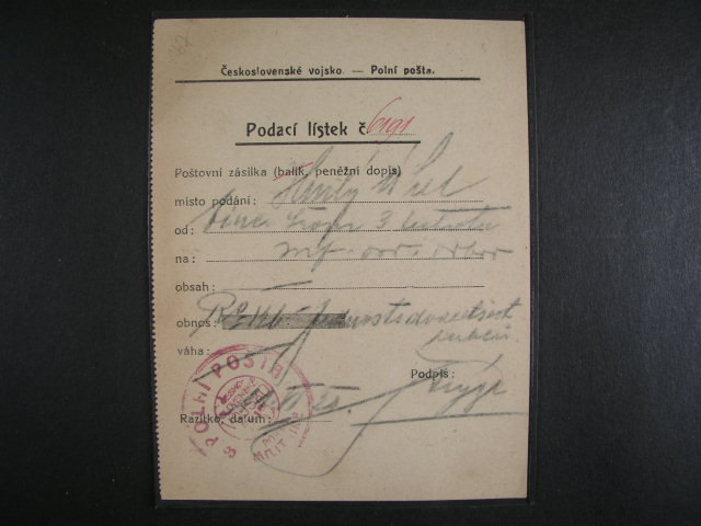 674 Francie - celistvost z Vitkovic do Prahy s pod. raz. MORAVSKA OSTRAVA 3.2.19 + modre kulate dvojjazycne raz. 21. CESKOSLOVENSKY STRELECKY PLUK 400