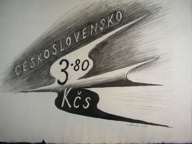 1068 orig. kresba C. Boudy z r. 1971 na aerogram - predlohova kresba formatu A4 2000