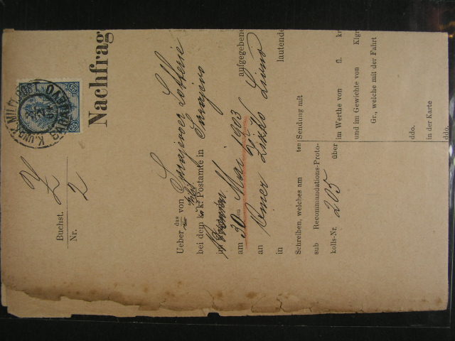 1342 Nachfrageschreiben frank. zn. 25h s raz. SARAJEVO 3.2.04, kat. Ferch. uvadi LP ! s poznamkou "Velka vzacnost" 8500